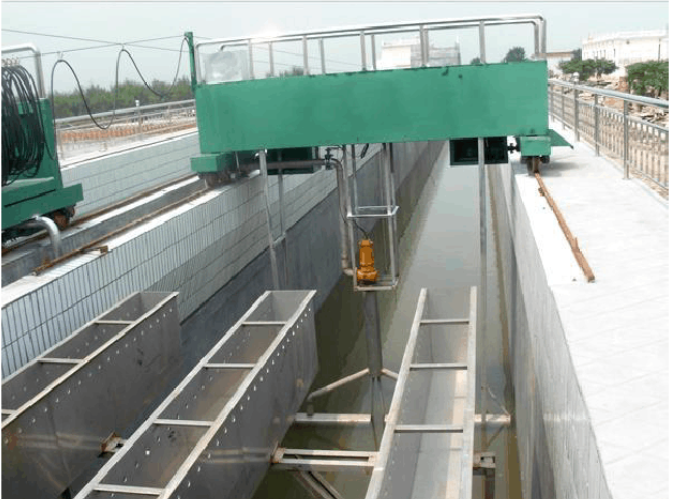 行车刮泥机驱动器设备推动刮泥机绕沉砂池管理中心转动,源水经沉砂池沉定后,上清液从溢流堰板排出来,沉定于水池的淤泥,在多数螺旋式曲线形刮刀的促进下,迟缓地沿水池流入集泥槽体,根据污泥浓缩池管排出来。另外池面泥渣集中化到泥渣刮刀和泥渣隔板中间的地区,当工作中桥历经浮在池面的泥渣排出来筒时,泥渣排出来筒被压着液位下,泥渣根据排出来筒排出来池外。