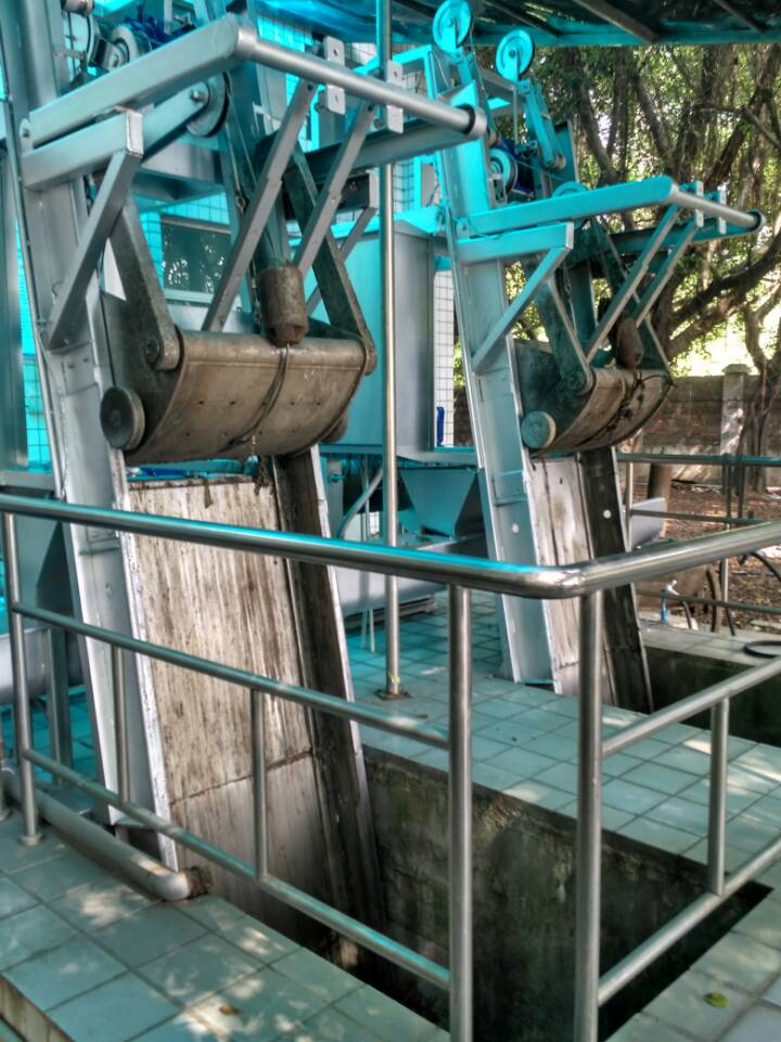 钢丝绳格栅除污机的增加是格珊机的一个开创性进度,运用更普遍、更便捷。提升的除物器不但能够将截留在齿耙上的固态悬浮固体消除掉,可以将絮状、盘绕状的条型物块消除掉,能够防止盘绕在齿耙上的条型物块在转动齿合过程中将齿耙断裂或折偏,危害格珊机的一切正常工作中。除物器的应用提升了格珊机拦污的品质和工作效能。